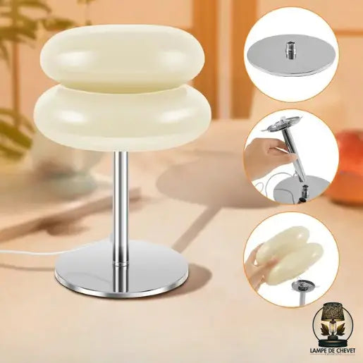 - Design : forme en double dôme, base en métal brossé