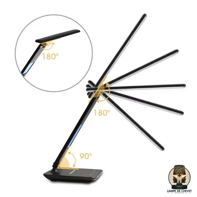 Une lampe de chevet avec chargeur sans fil en ABS noir ou blanc, multifonctionnelle et orientable de la base à la tête.