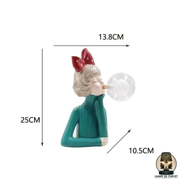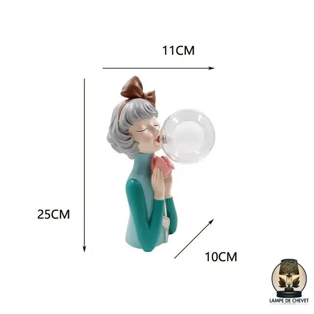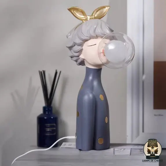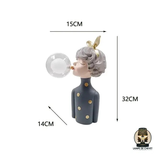 - Design artistique et original : disponible en plusieurs versions (noeud bleu, doré, rouge ou marron), chaque lampe représente une jeune fille soufflant une bulle en verre qui diffuse une lumière douce et apaisante.