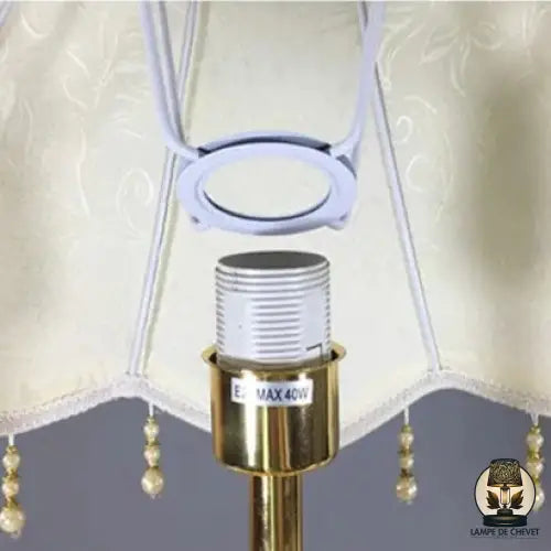 - Design vintage : abat-jour en tissu blanc à motifs floraux (26 cm de diamètre) et base en aluminium disponible en blanc ou doré.