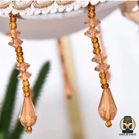 Son design rétro, avec ses pampilles en perles et son diffuseur de forme pagode orné de fleurs et souligné d'un liseré brodé, apportera du charme à votre chambre.